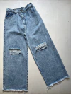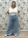 Jean wide leg semielastizado negro, con aplique de strass negros