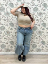 Pantalón de Jean baggy tela rígida y cintura recta. Color Azul