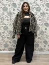 Pantalón de jean wide leg con cintura elastizada. Tela rígida, color negro.