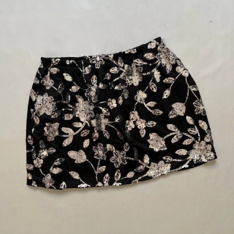 Mini de microfibra con lentejuelas bordadas en forma de flor