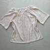 Short de lino broderie grueso, con voladitos y cintura elastizada